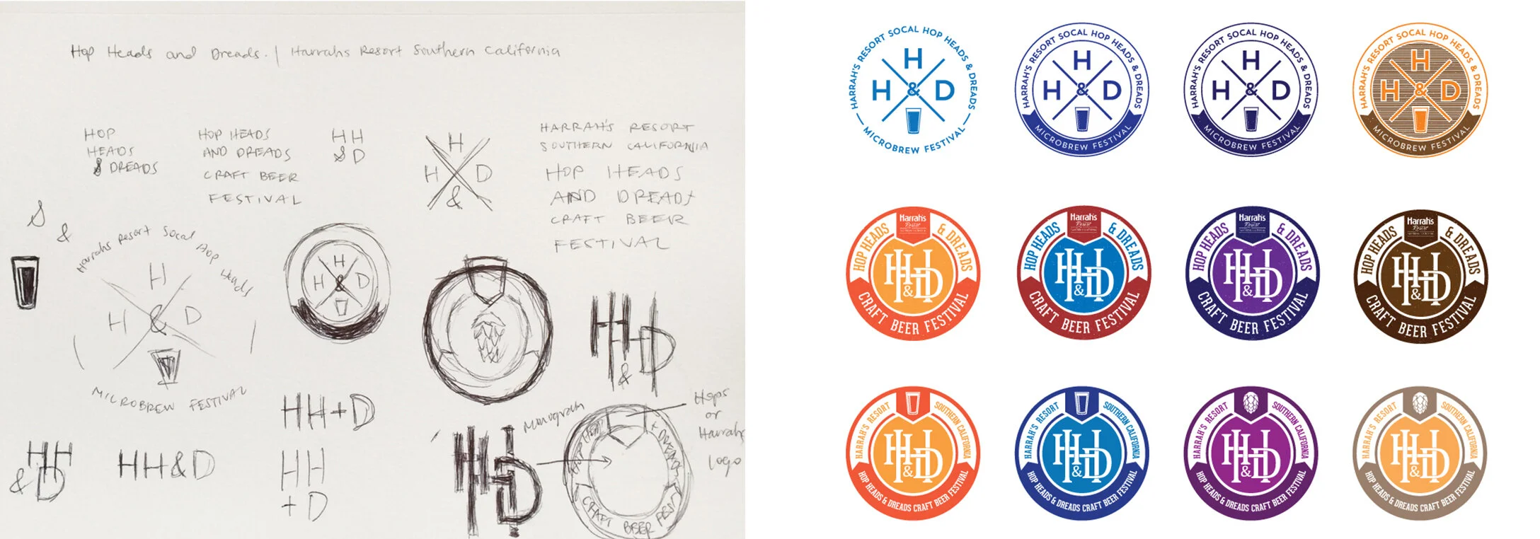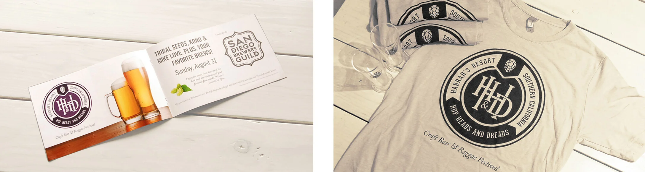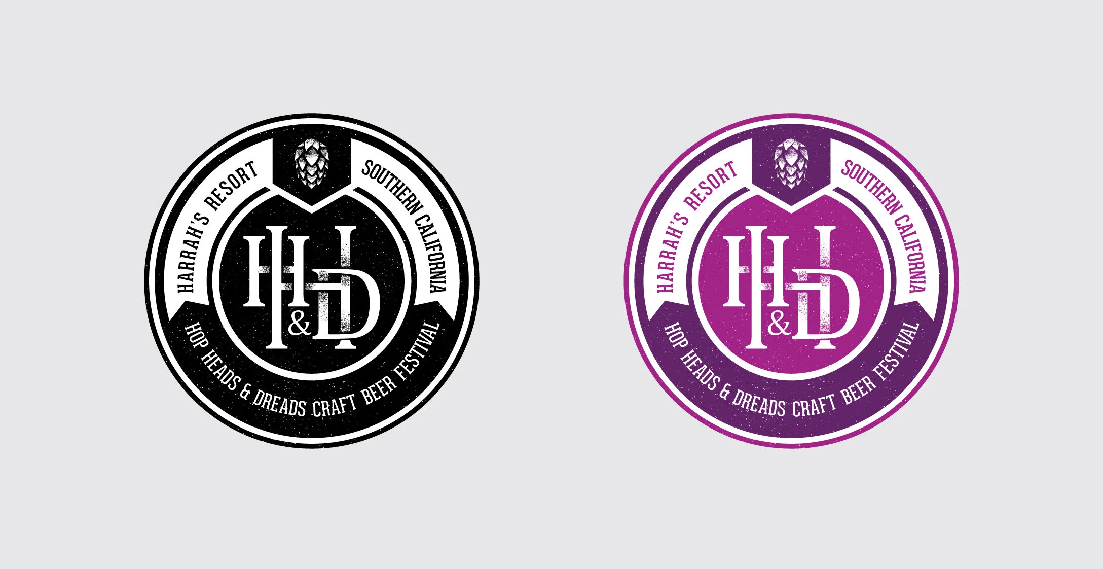 Hop Heads and Dreads is an annual Music and Beer festival held at Harrah's Resort Southern California. I wanted to create a bold and timeless logo that could be used on various pieces of collateral and media.